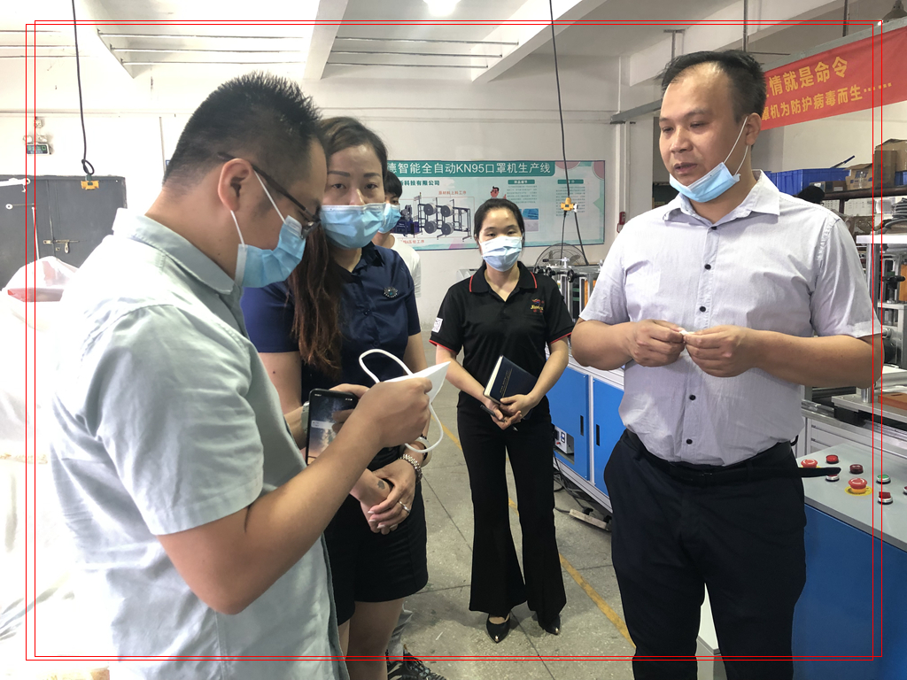 總經理劉明軍先生為工作組介紹錦德防疫用品智能排版切割設備